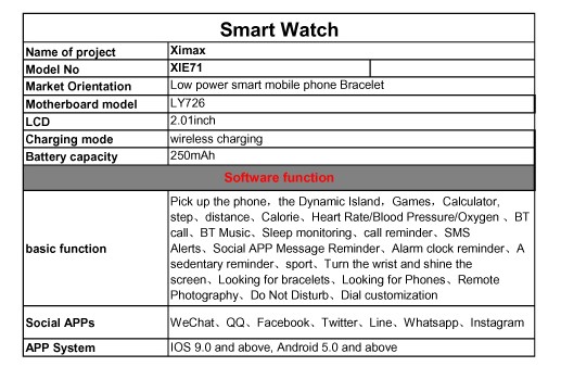 Ximax Smart Watch Model: XIE71 Display: 2.01 inch Battery: 250mAh